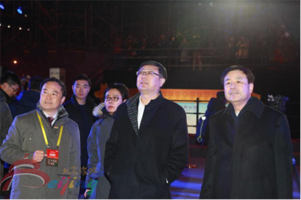 北京市委副书记、代市长陈吉宁和副市长王小洪在永定门公园广场检查活动准备情况