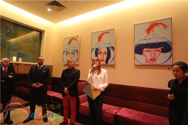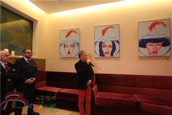 开幕仪式上,策展人、意大利文化中心主席温琴佐·桑弗先生,通过翻译从东西方不同的文化背景里阐述了所展出作品的魅力:画家对主题的表达、色彩的运用、都极具中国文化特点,运用名人形象,传达生活的快乐与新奇,表现出了幸福快乐以及对生活的渴望,吸引了东西方人群的共同的关注,具有积极的社会意义。